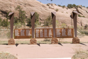 On July 28, 1982, President Reagan declared August 14 National Navajo Code Talker’s Day. It was September 17, 1992 when the Pentagon recognized the Code Talkers’ contribution. This delay was reportedly due to the “continued value of their language as a security classified code.” It was December 21, 2000 that President Clinton signed into law the statute awarding the original 29 Navajo Code Talkers with Congressional Gold Medals – the highest civilian award in the United States. And it was July 2001, when President Bush personally presented the Congressional Medal to four surviving Navajo code talkers in the Capitol Rotunda in Washington, DC. The fifth living code talker of the original 29 was unable to attend. Gold medals were also presented to relatives of the 24 code talkers no longer living.
